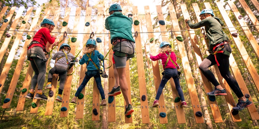 Looking for an adventure like no other? Plan a visit to Högt & Lågt's climbing and adventure park, featuring a variety of obstacle courses for all ages.