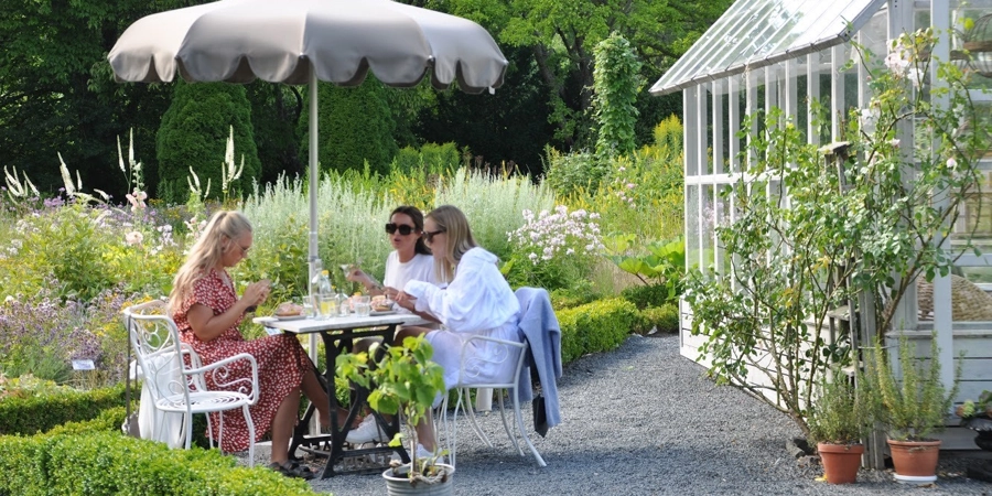 In Wisingsborgs Trädgård, you can still experience the place where Visingsborg Castle's herb garden once stood. Here you can enjoy lunch, a Swedish ‘fika’ of coffee with maybe a pastry or bun, or a refreshing drink among the magnificent flowers and herbs both outdoors and inside the old, rustic farm building.