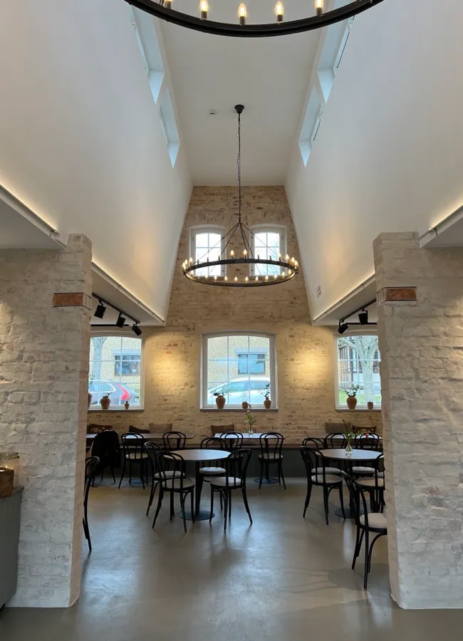 Med ett nytt fint gestaltat centralrum för caféliv och entréfasad med nya fönsterdörrar så bidrar projektet till helhetsmiljön på Rosenlunds herrgård och stärker även anläggningens viktiga mittaxel.