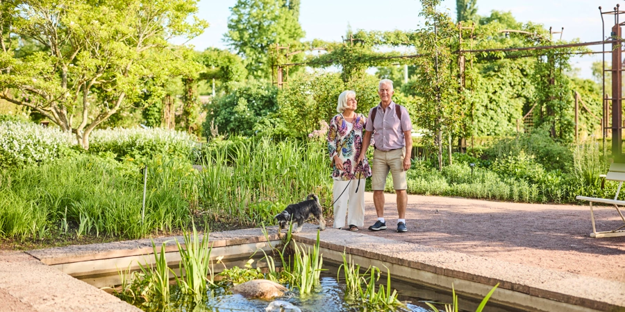 Från Jönköpings resecentrum kan du gå eller cykla längs Vätterns strand till Rosenlunds herrgård och rosarium. Sträckan är cirka tre kilometer lång.