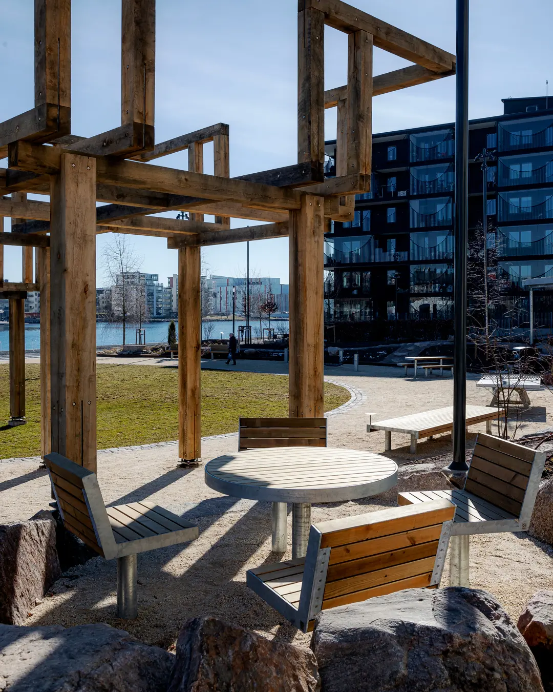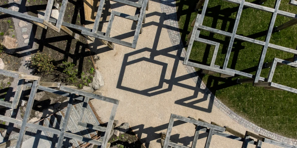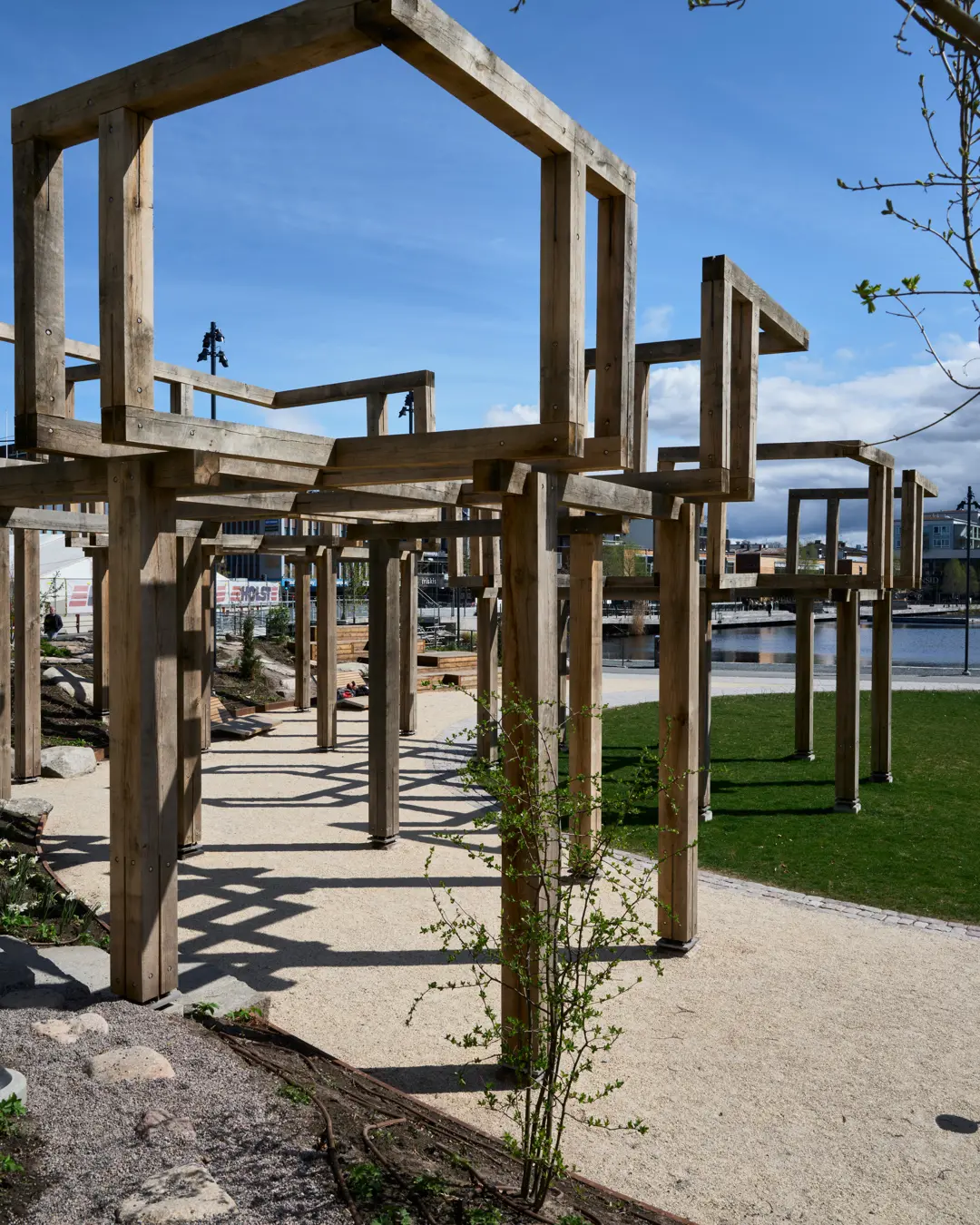 På västra kajen finns även Bastionsparken. Parkens gestaltning ska spegla Bastion Carolus och här ser du bland annat en mur och en vallgrav.