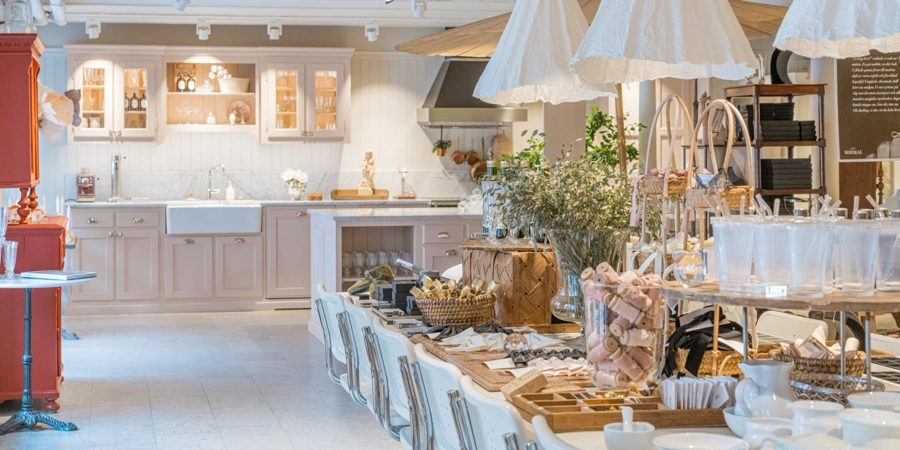 Lokalen går att hyra precis som rekvisita och stylingprodukter för en unik dukning.