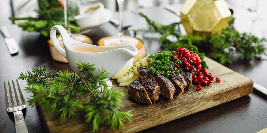 Here you’ll find a variety of accommodation options, from hotel rooms to charming cottages. The main building houses both the hotel and the restaurant, while several self-catering cottages are beautifully situated nearby, close to nature. At BauerGården, meals are prepared using local produce and ingredients from nearby farms and suppliers.