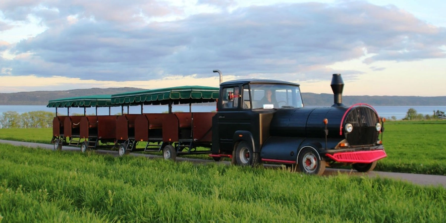 Discover Visingsö on the charming and popular tourist train Visingsötåget. The train takes you on an exploration of the southern part of the island, where you'll pass various sights and fascinating historical landmarks.