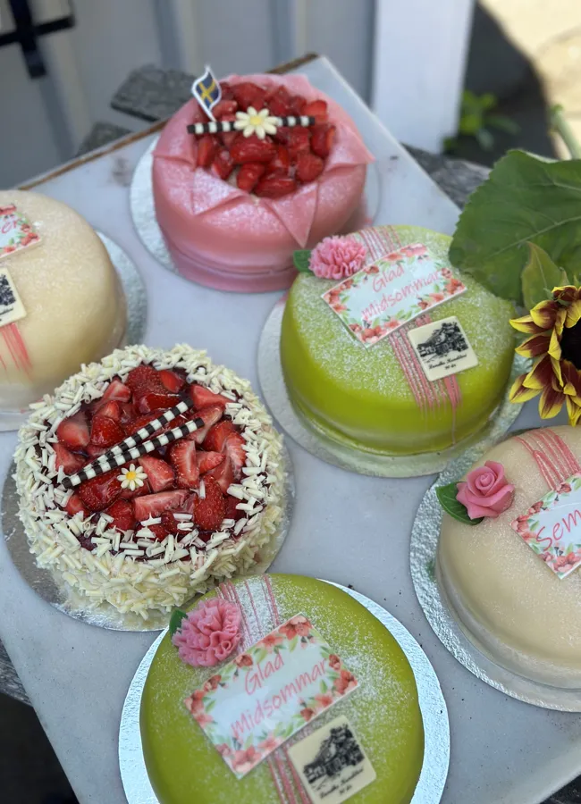 Varje lördag och söndag kan du äta en god brunch med nybakade frallor, goda pålägg, kalla och varma rätter och runda av med tårta och andra söta bakverk.